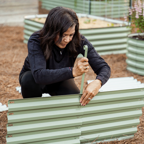 Beyond assembly, our beds are built from Aluzinc-coated steel that lasts 20+ years without rusting, finished with USDA-approved food-safe paint, and stand at an ergonomic 17-inch height. Plus, the 6-in-1 modular design lets you reconfigure your bed into six different layouts from a single kit.